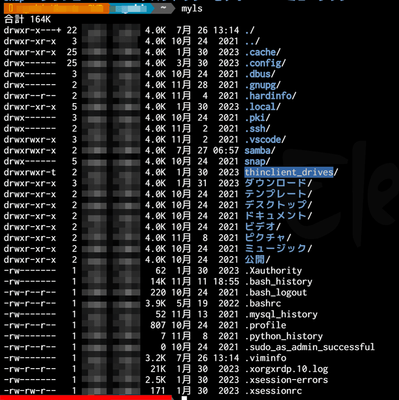 これはLinuxコマンドの中でも定番だと思いますが、オプションを色々と付与して実行することでかなり見やすくなります。私がいつも使用するlsコマンドのオプション付きの例は以下になります。