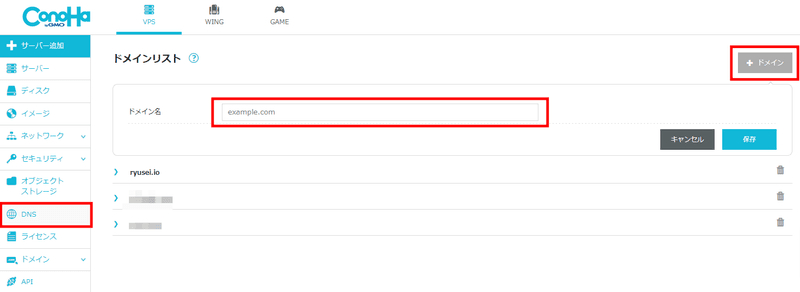 Next, configure the domain you obtained through Conoha's management panel in the DNS settings.