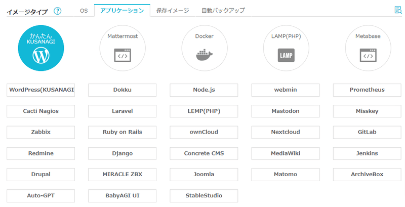 また、新規サーバー構築時に自動でインストールされるアプリケーションも選択できるようになっています。